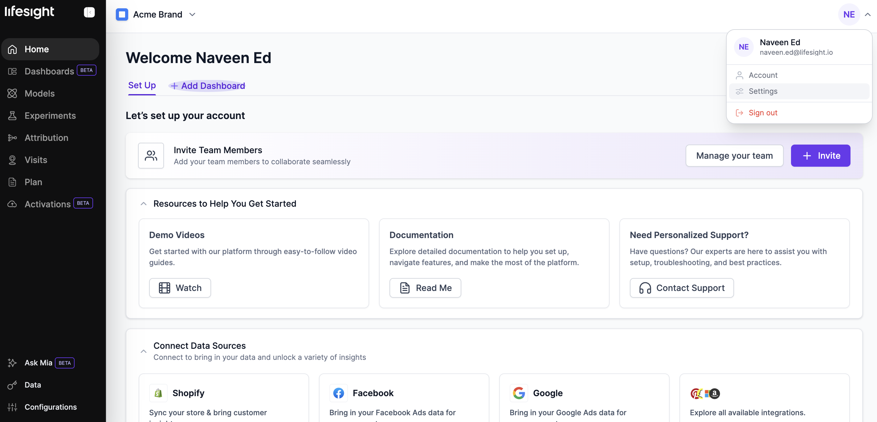Join Lifesightbutton to view the Lifesight platform homepage.