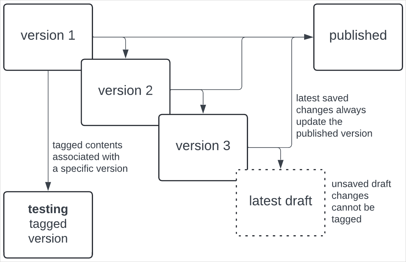 Tagging a Dashboard or data model version effectively publishes the document version at that particular point in time, but lets you continue iterating on the source document in a typical draft and publish workflow, without affecting the tagged version.