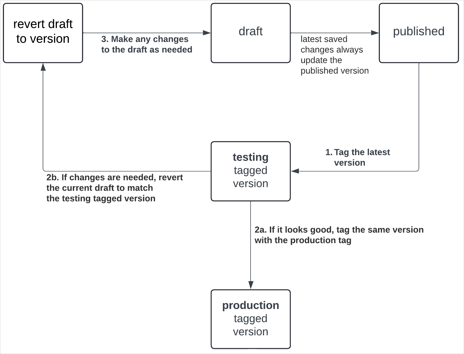 You can also version tag data model documents, and use a similar workflow to tag specific data model versions for testing or production use.