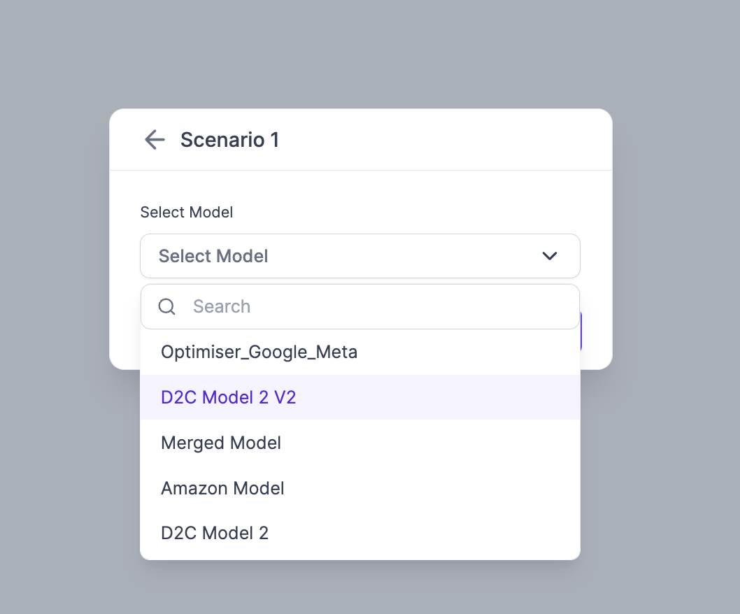 From the Select Model dropdown, choose the successfully calibrated Marketing Mix Model you wish to use as the foundation for your plan.