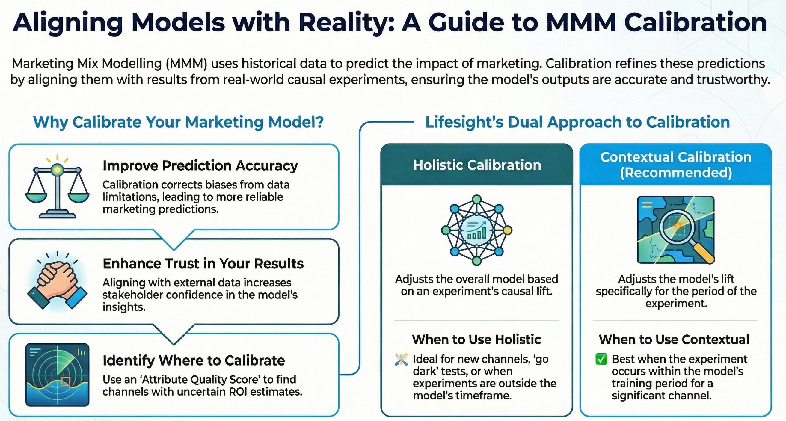 Lifesight's approach to model calibration is unique in the industry. We refer to this as Holistic & Contextual Calibration. Depending on the scenario our platform auto-applies the right approach for model calibration.