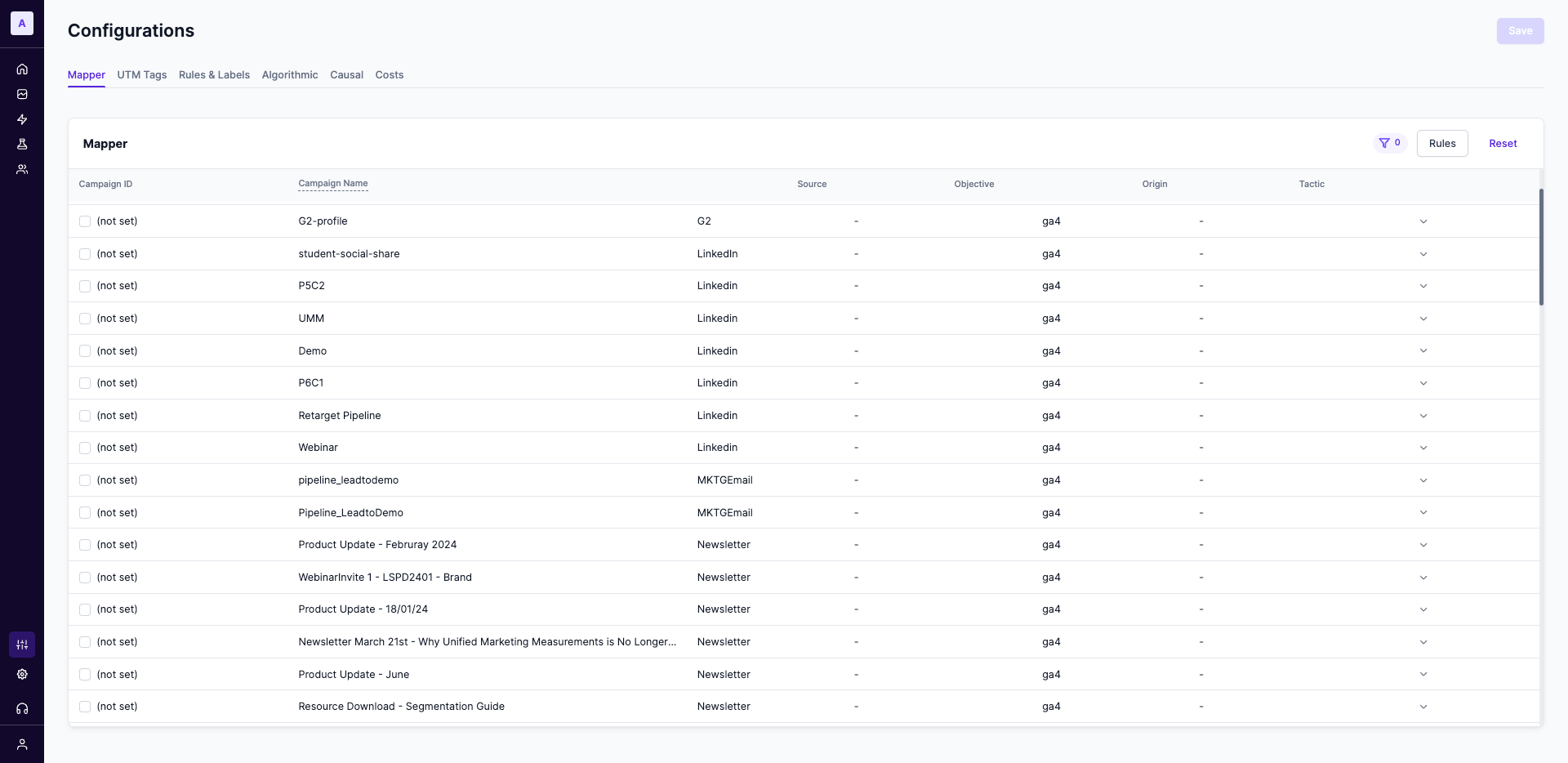 Google BOF,Meta MOF,Meta TOF). This is configured by setting up rules in the Configurations > Mapper section of the Lifesight platform.