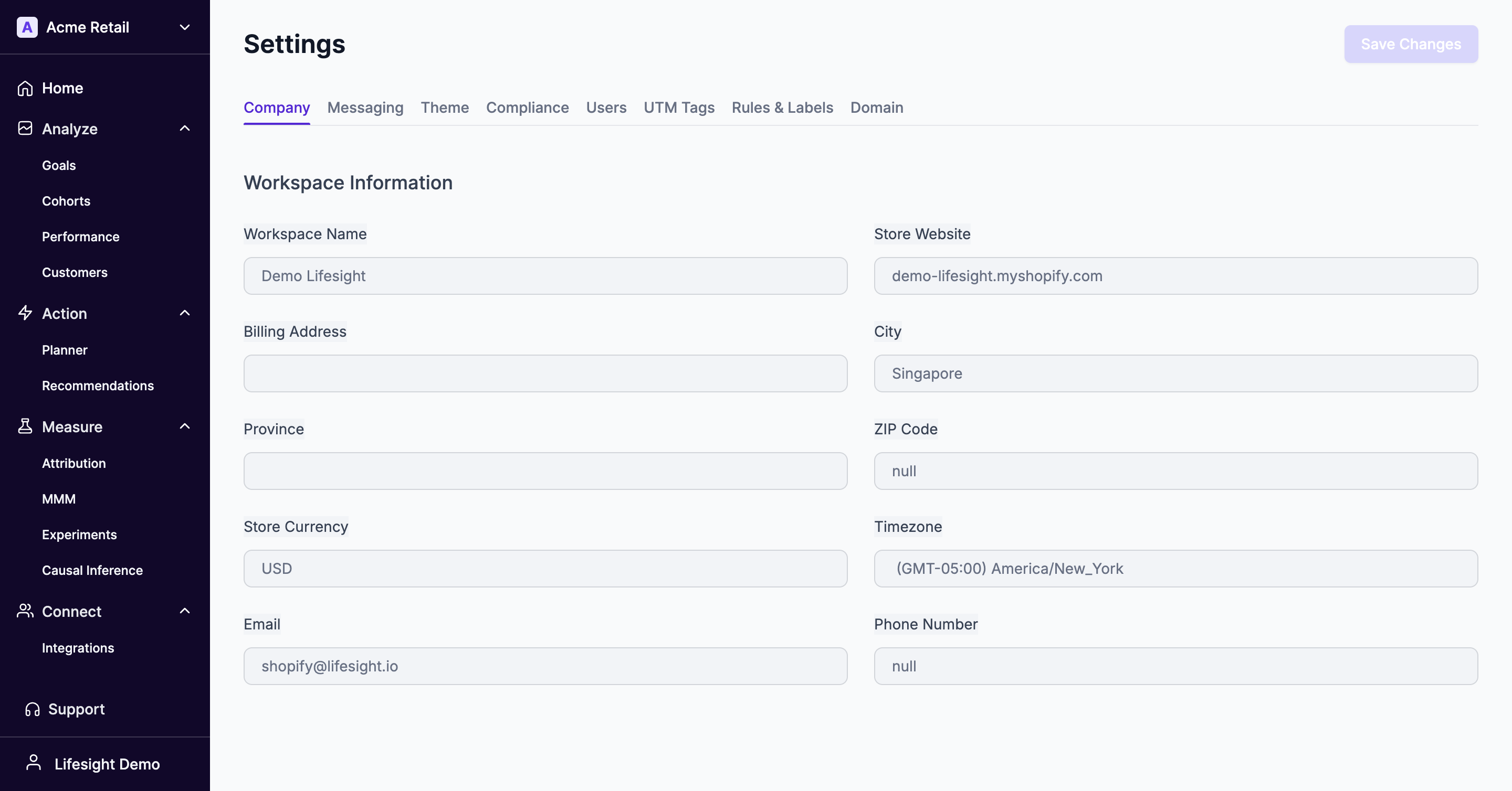 CompanyView your basic workspace information Click the workspace name to view a dropdown menu. Select Settings Updated 11 months ago SettingsUser rolesAsk AI