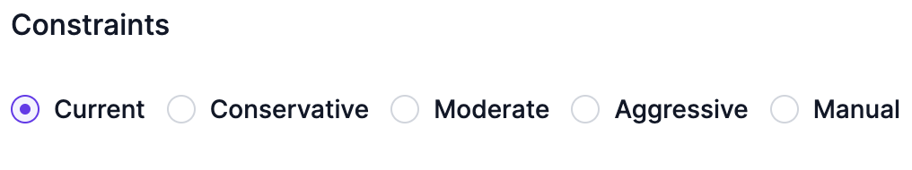 The Aggressive Constraint permits the widest range of adjustments, with spending recommendations ranging from 1% to 499% of the current spend. This constraint is suitable for scenarios where significant changes in budget allocation are considered.