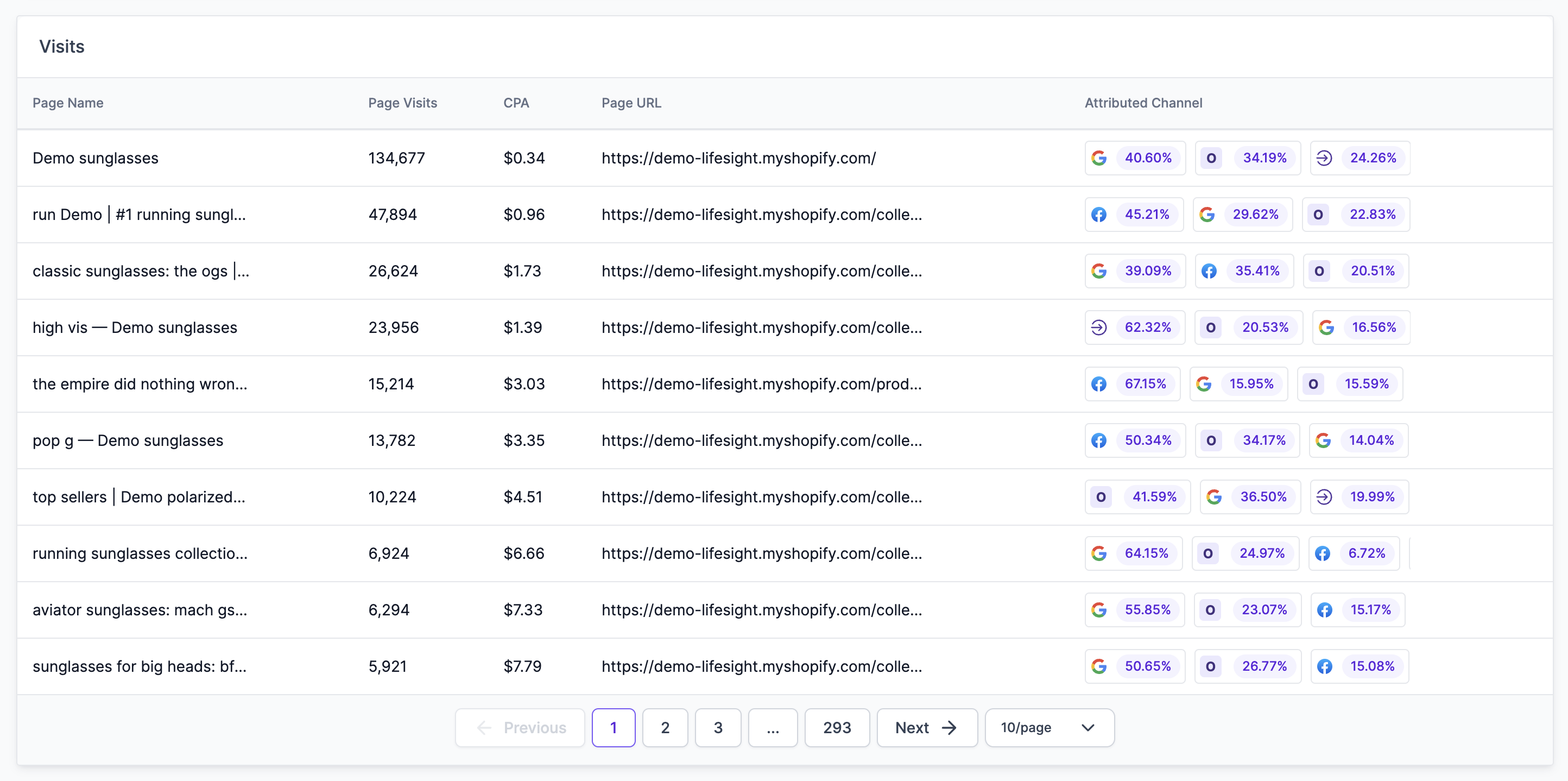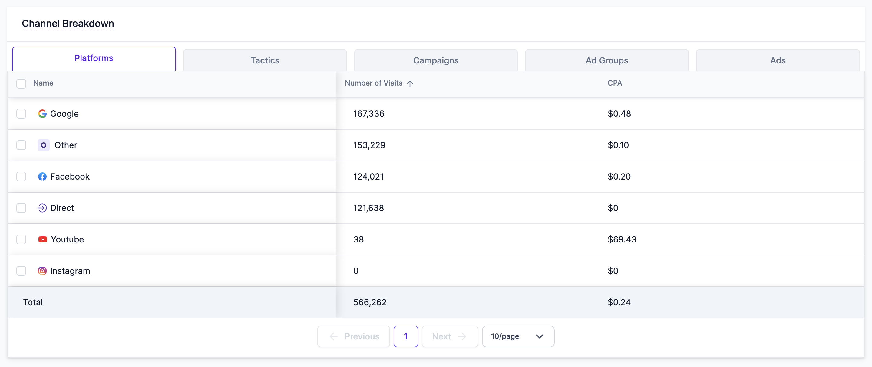 Channel Breakdown Table