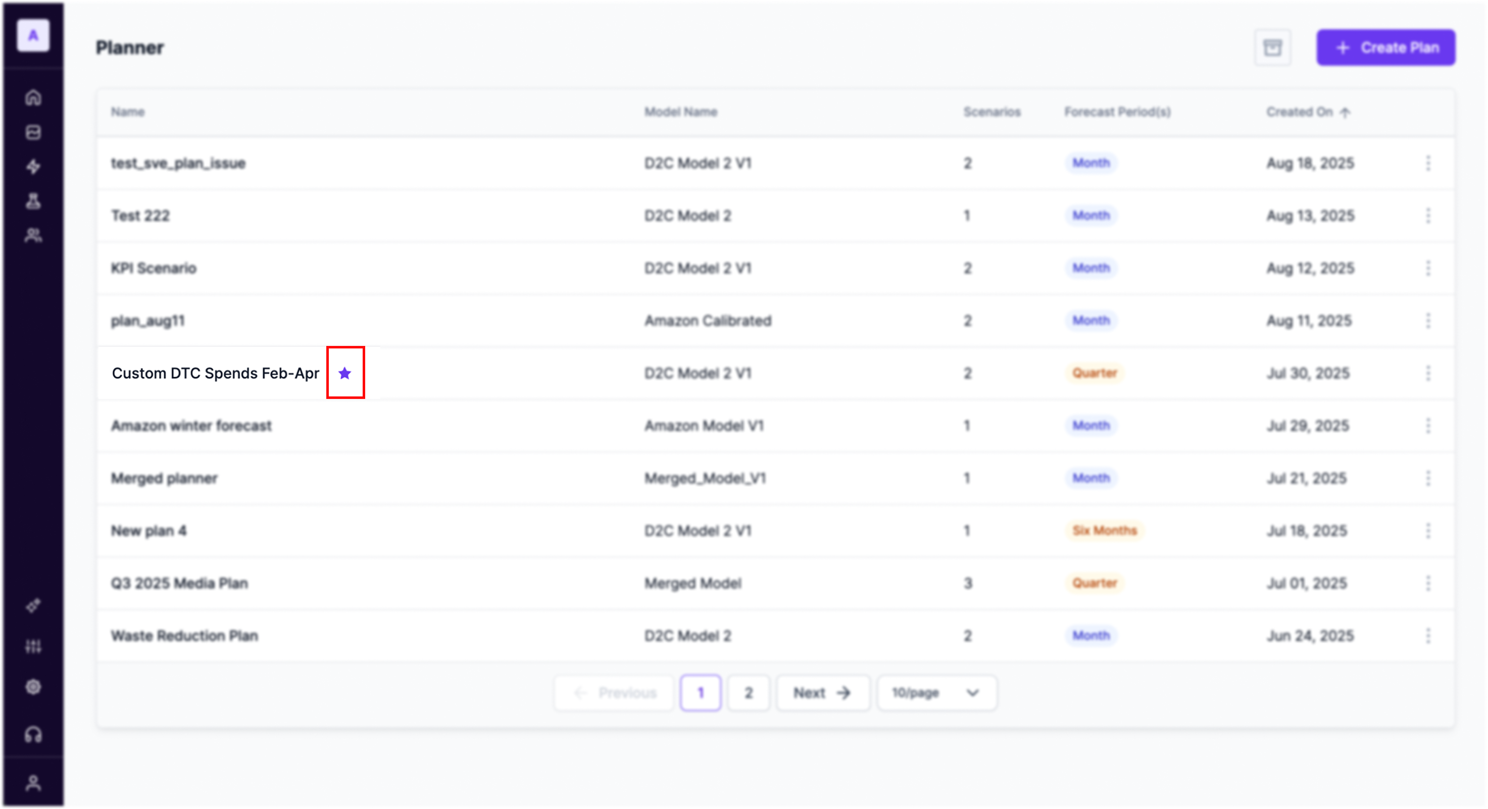 On the main Planner dashboard, a star icon (★) is displayed next to the name of any plan that contains a default scenario. This gives you a quick visual indicator of your primary plans.