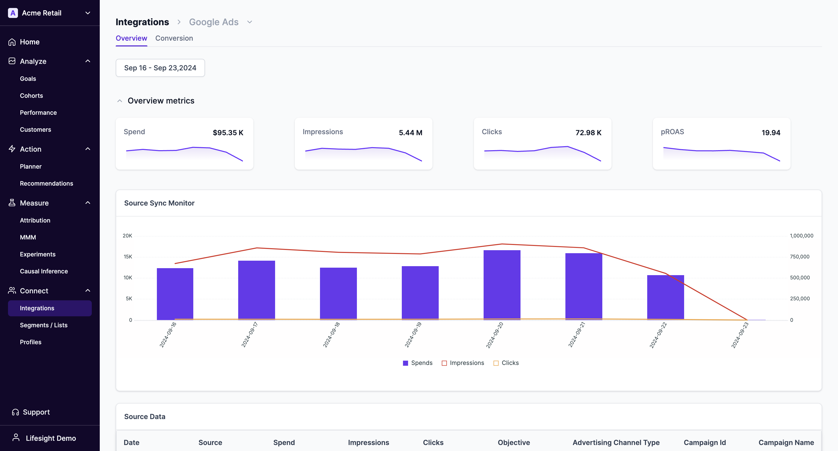- The status will get changed to ‘Active’ and the ad data from the designated account will be available in the Attribution dashboard for unified reporting.