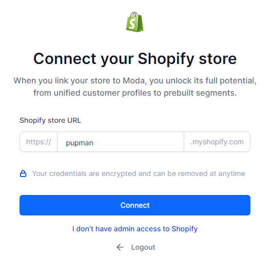 - Next, enter your Shopify store ID in the field below and click Connect.