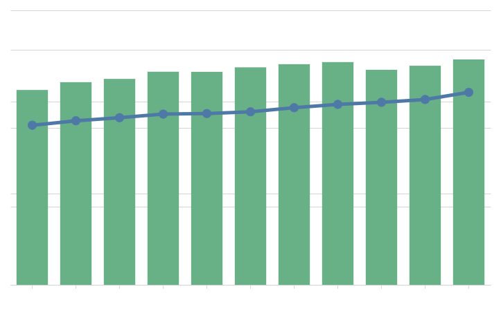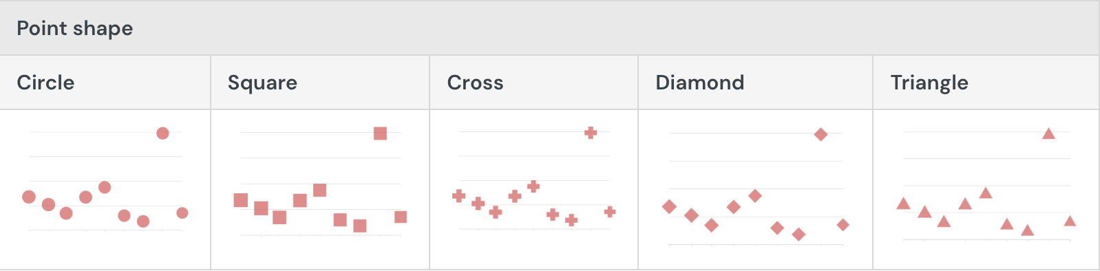 Combine bar, line, area, and/or point marks to compare multiple types of metrics. Evaluate the relationship to identify correlations and variations between the datasets.