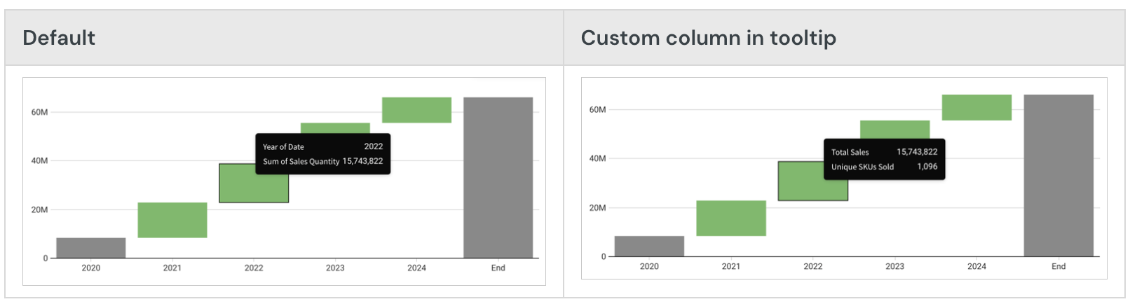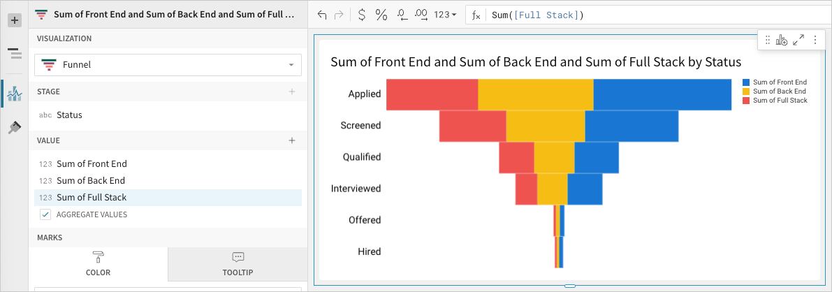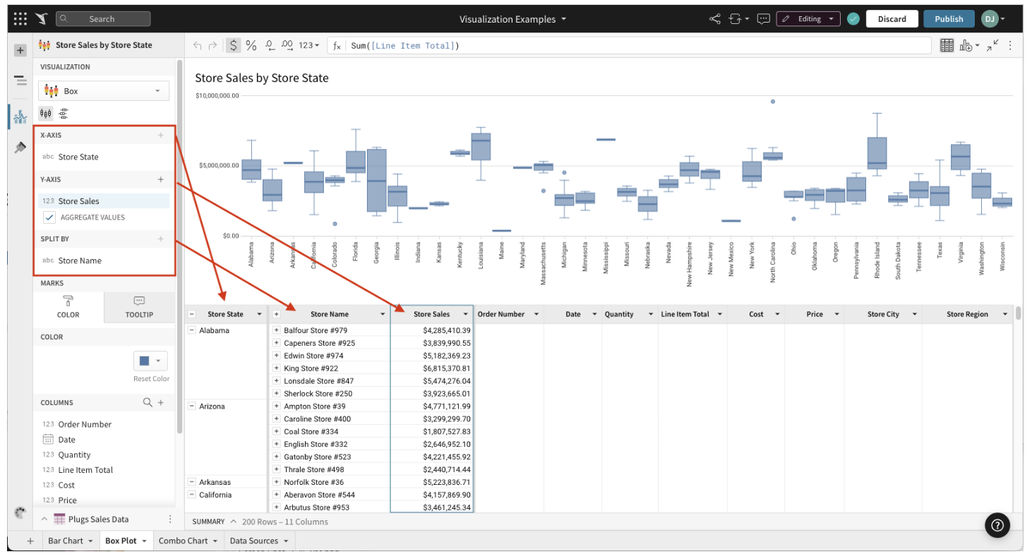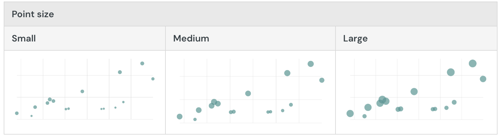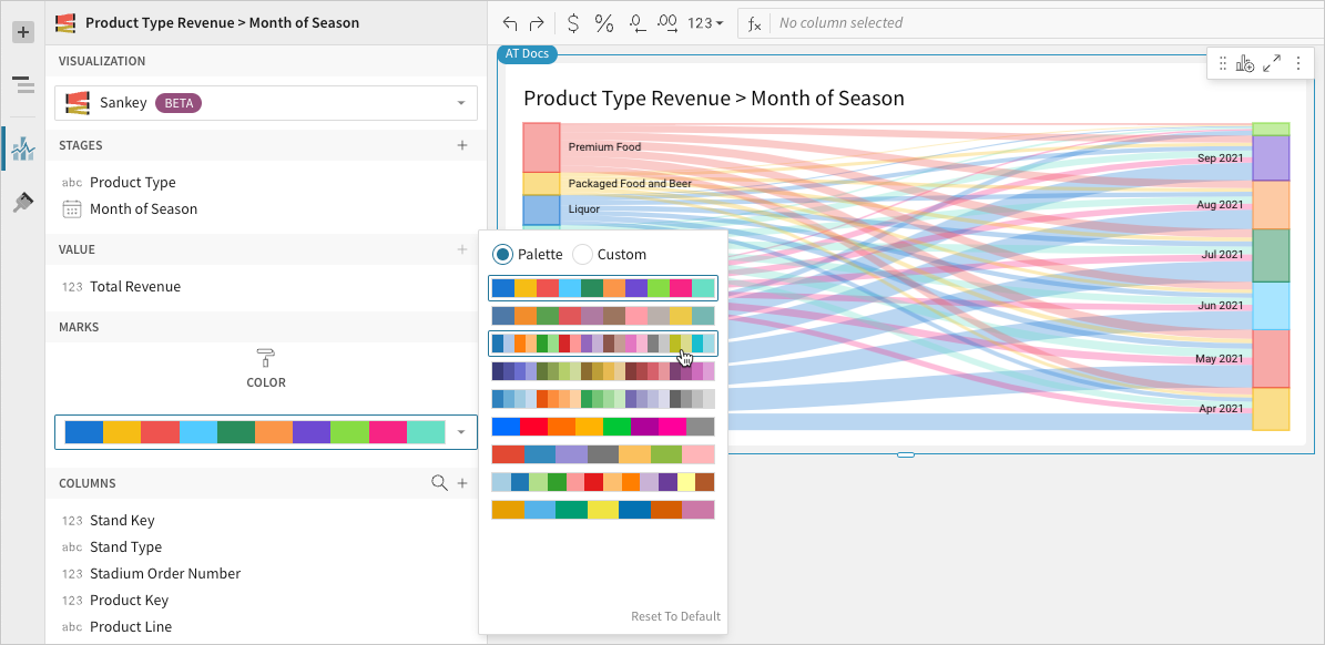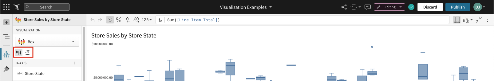 You can convert data value types, change the data aggregation or truncation, and customize chart markers and tooltips. Depending on the visualization type selected, you may also have options to change the chart orientation, modify data stacking, and add trellis rows and columns.