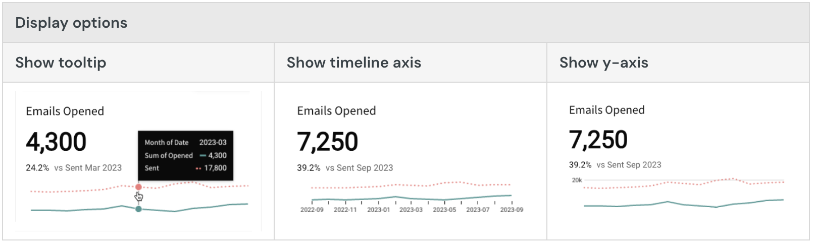 - Consistency: The shared underlying data ensures consistent application of filters and aggregations, while the use of a single visualization provides uniformity in scale, format, and styling.