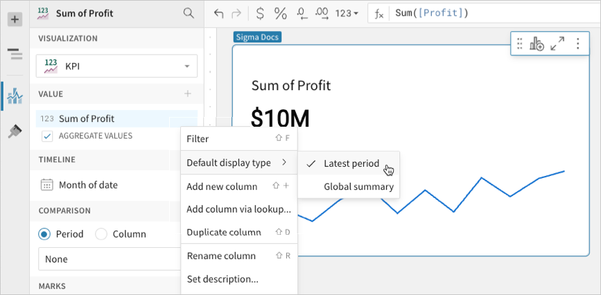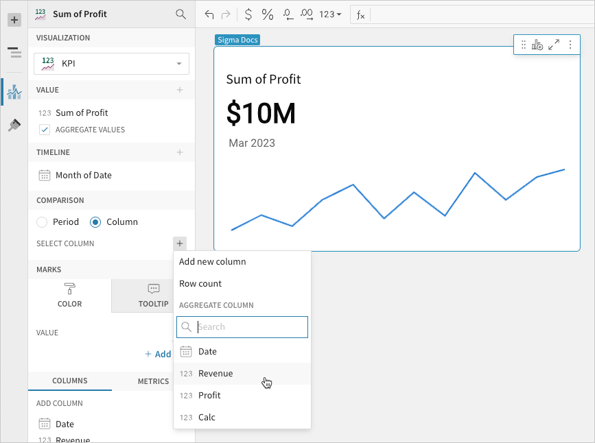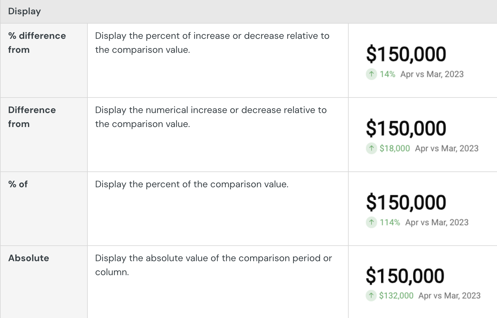 - `[optional]` Control how the source column data is calculated and displayed in the chart: