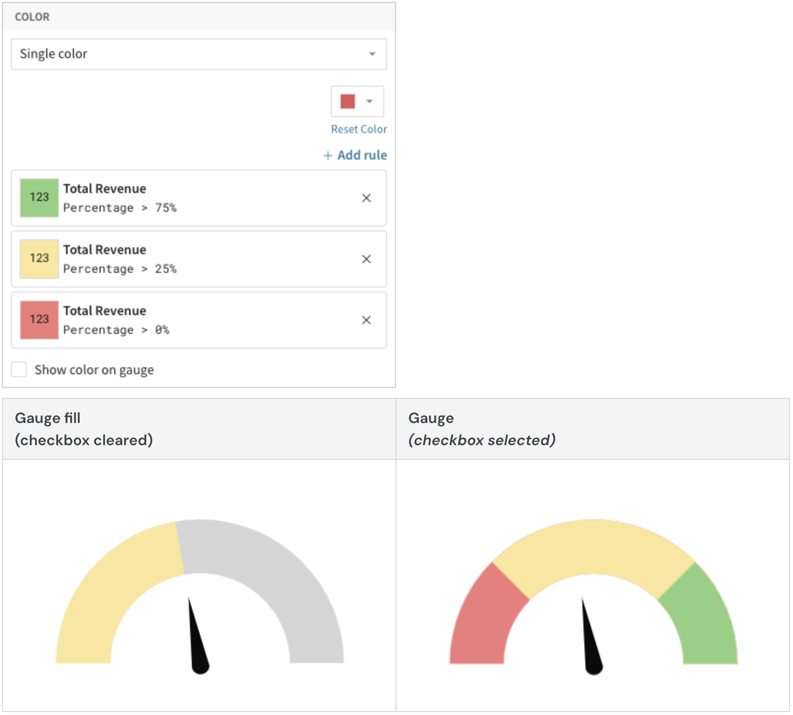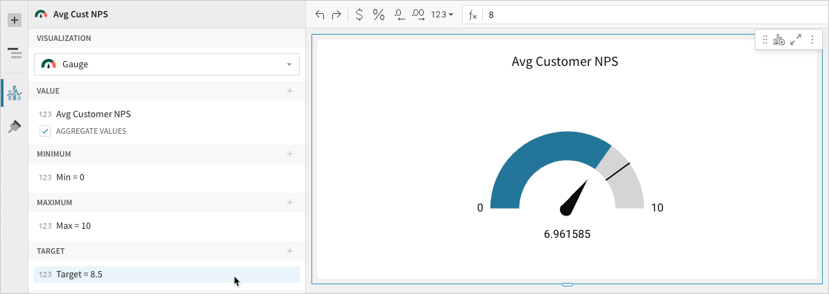 Measure a single-value metric against a radial scale. Evaluate growth, assess performance, and track progress toward a goal.