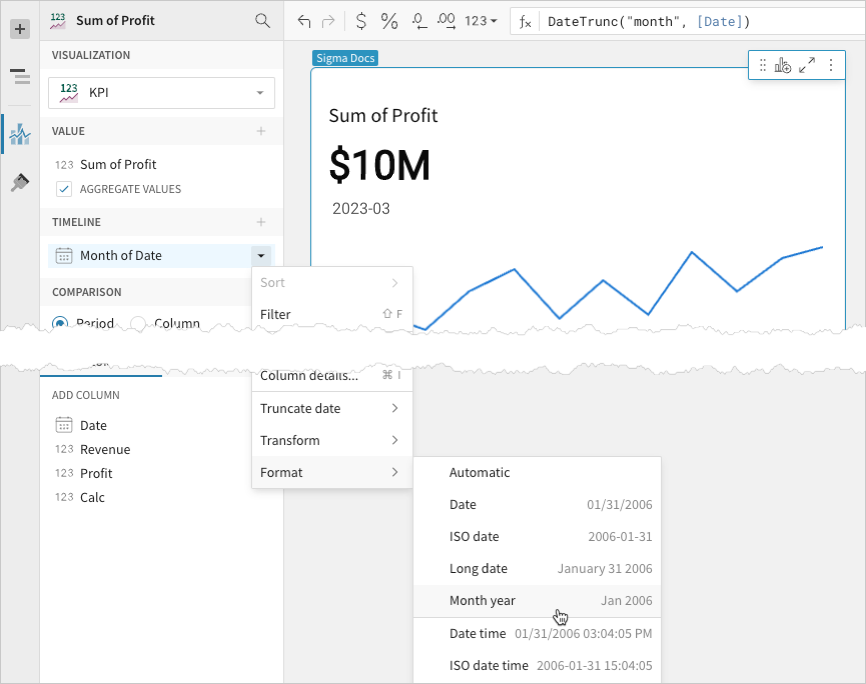 NoteAvailability of column menu items and corresponding options varies depending on the column’s data value type (for example, Truncate date is available for date values only).
