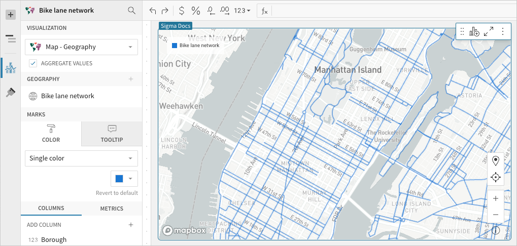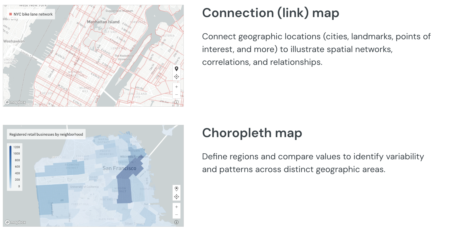 Maps are visualizations and can be created via the PAGE ELEMENTS section of your Dashboard's editor panel or directly from an existing data element.