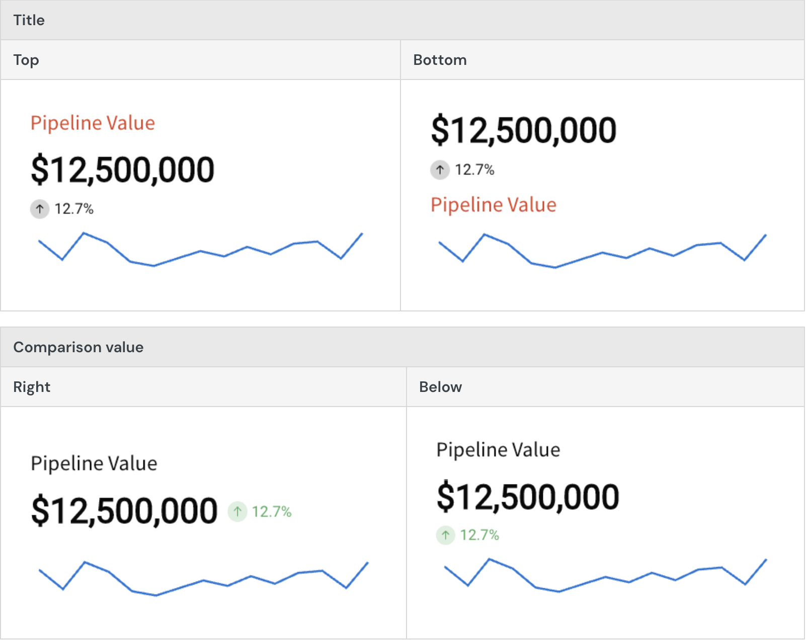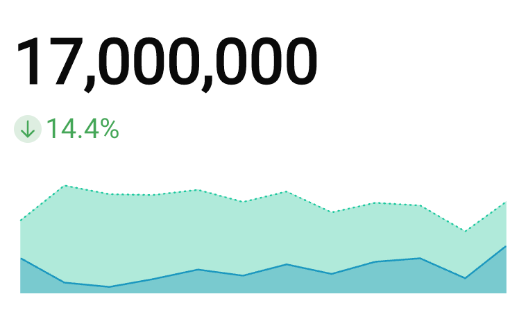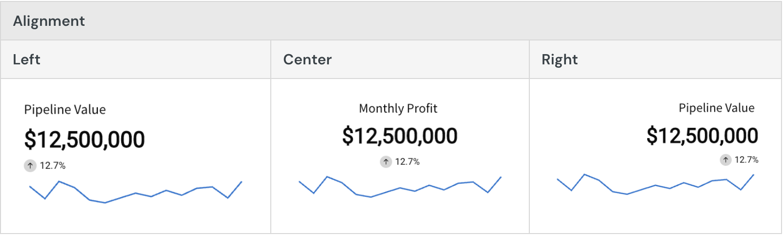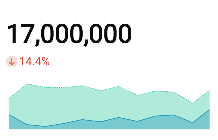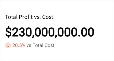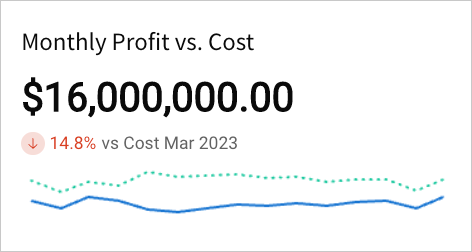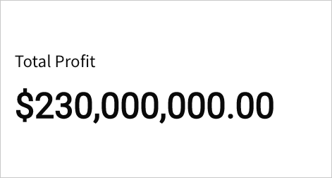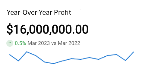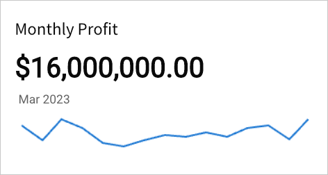 Highlight a single metric value to measure performance or progress toward a goal. Summarize the total value for a specific period, compare the value over time, or measure it against a benchmark or target.