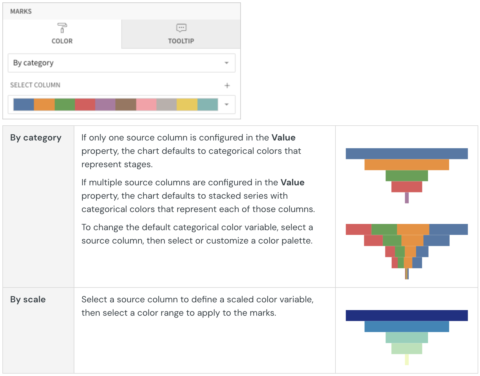 `[optional]` Control how the source column data is categorized and displayed in the chart: