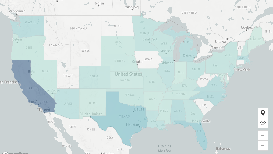 Illustrate data distribution by region, including country, state, county, and city. Compare scale to identify variability and patterns across distinct geographical areas.