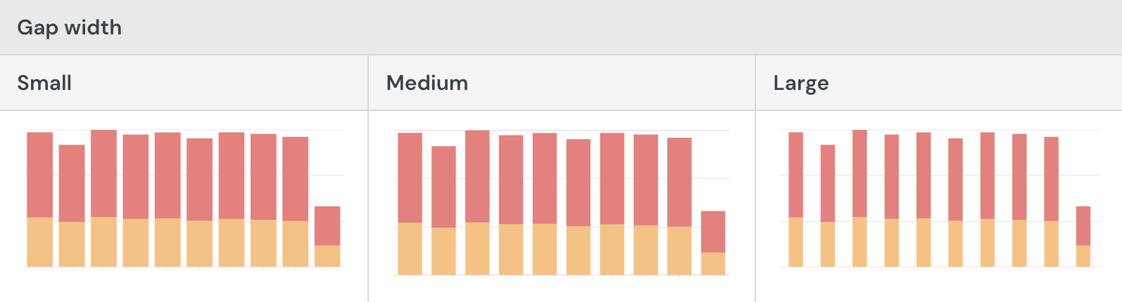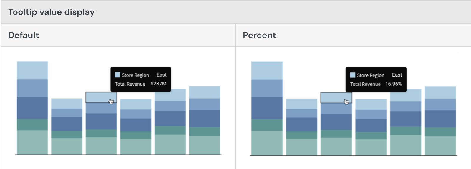 Lifesight features various properties and format options that give you the flexibility to build advanced bar charts and variations, including stacked, percent stacked, clustered (grouped), and dual-axis bar charts.
