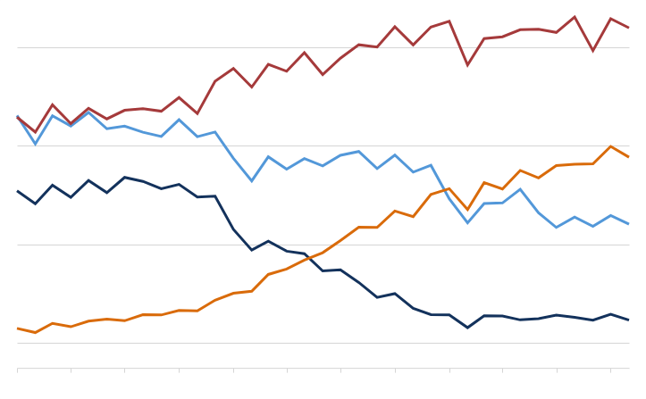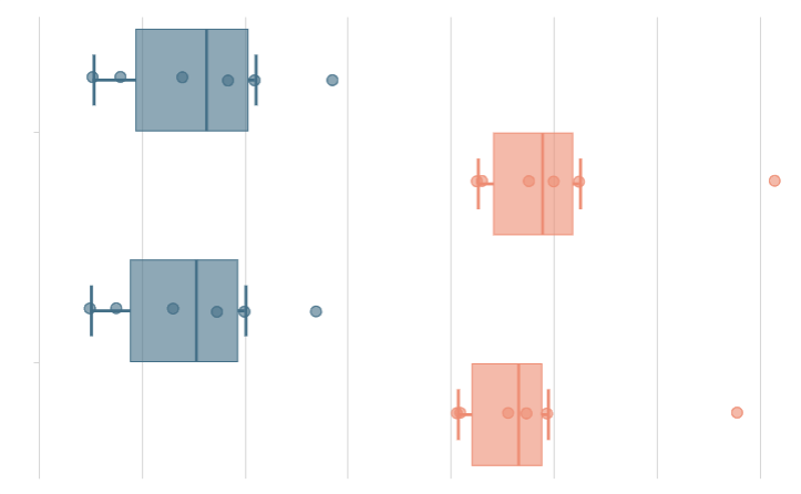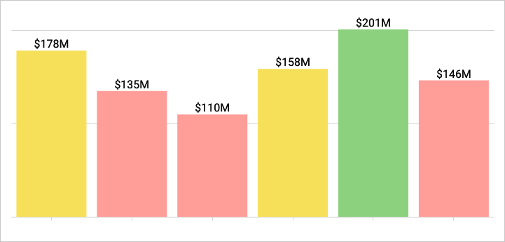 Show how values vary across categories or groups of data. Compare values against each other, to a reference mark, or as proportions of a whole.
