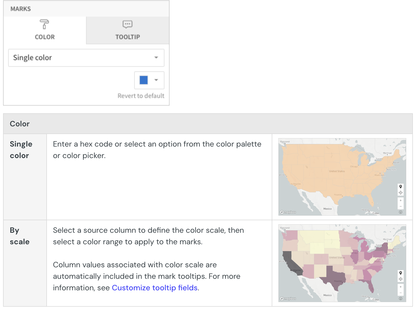You should choose your map type based on your available data and the results you wish to see. For example, if you want to map a text column [State] with cell values like "Colorado" and "California", you should choose a Region map type.