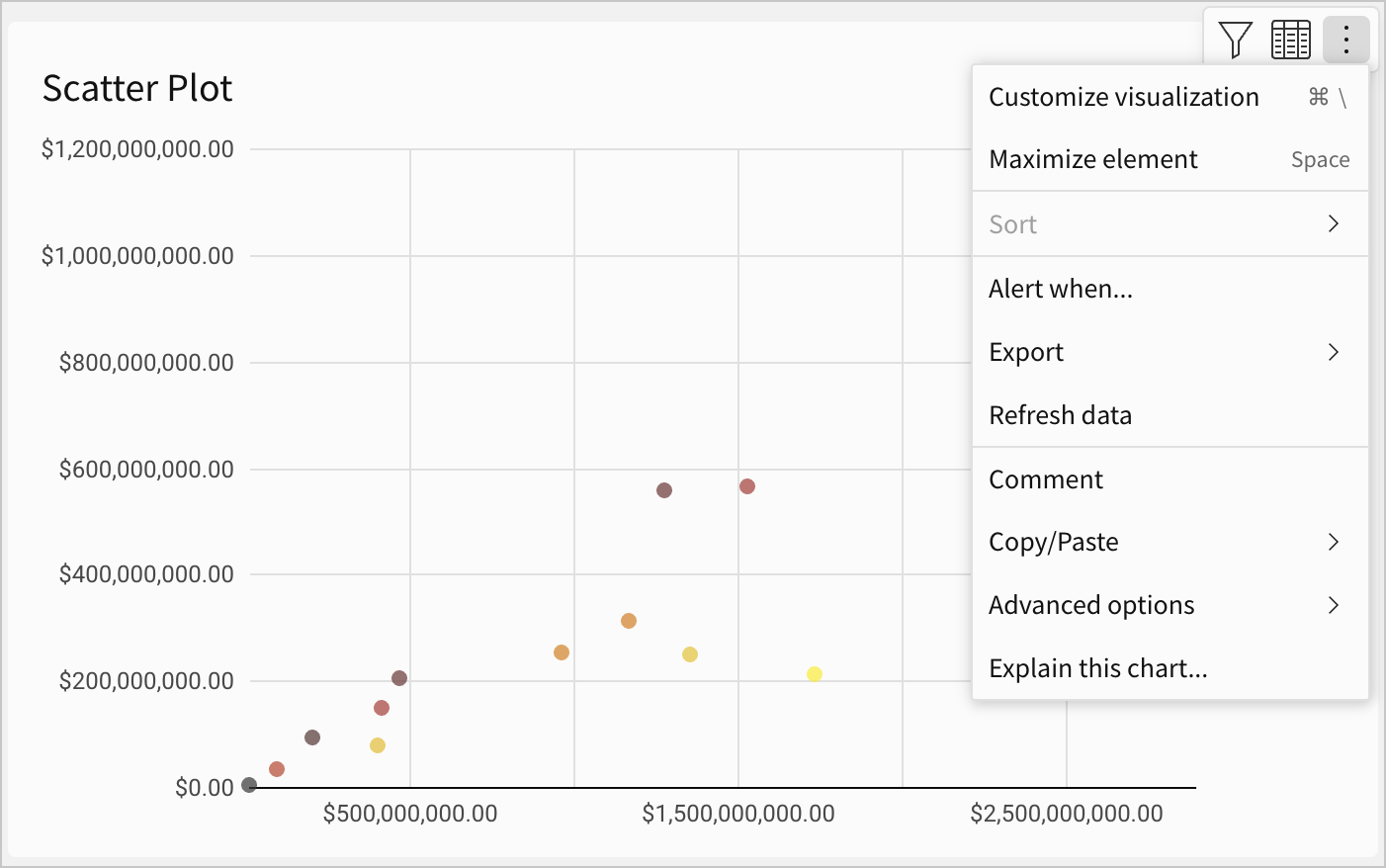- In the element toolbar, click More to open the element menu, then select Explain visualization.