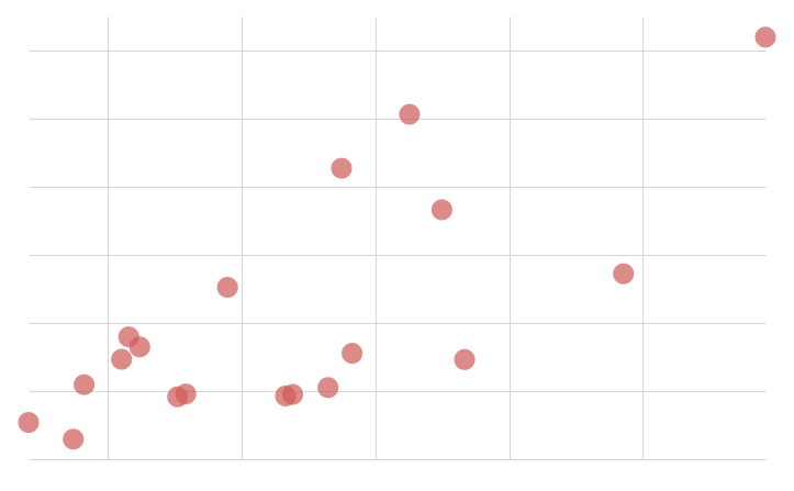 While the grid structure makes it easy to compare revenue between data subsets that share a common store region or product type (shared attributes across the same row or column), you can also obtain meaningful insights by exploring data points across the complete grid.