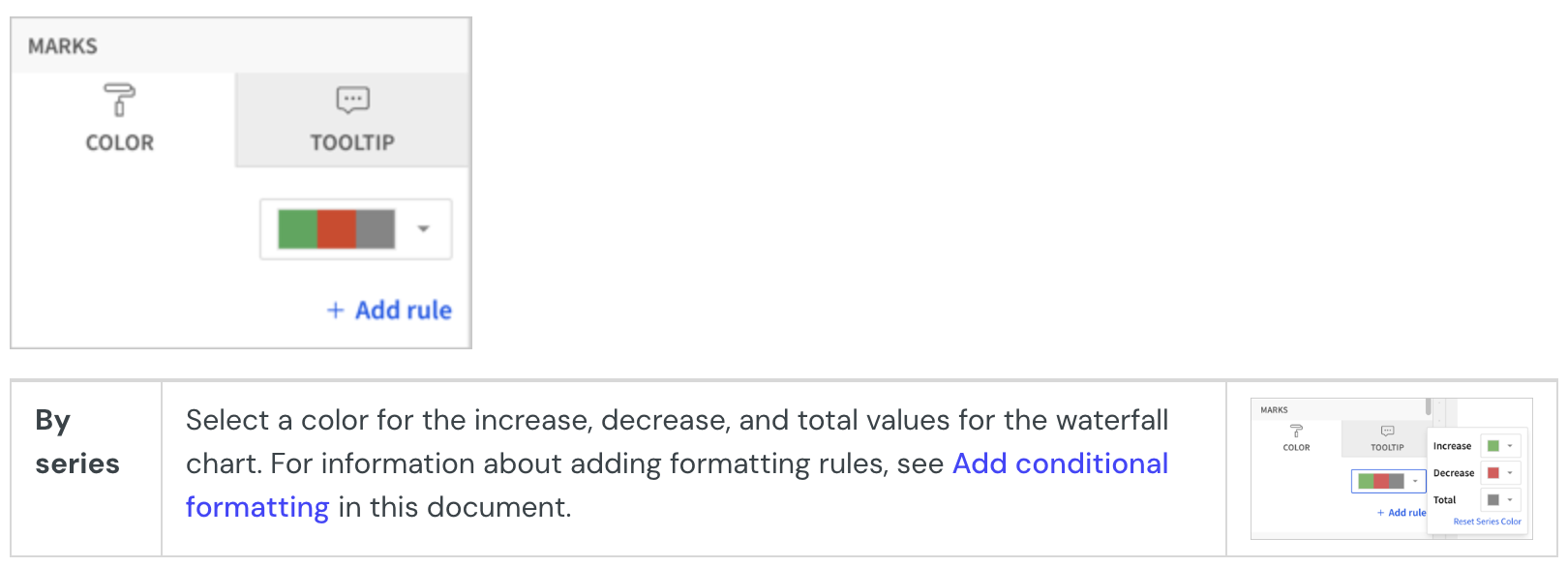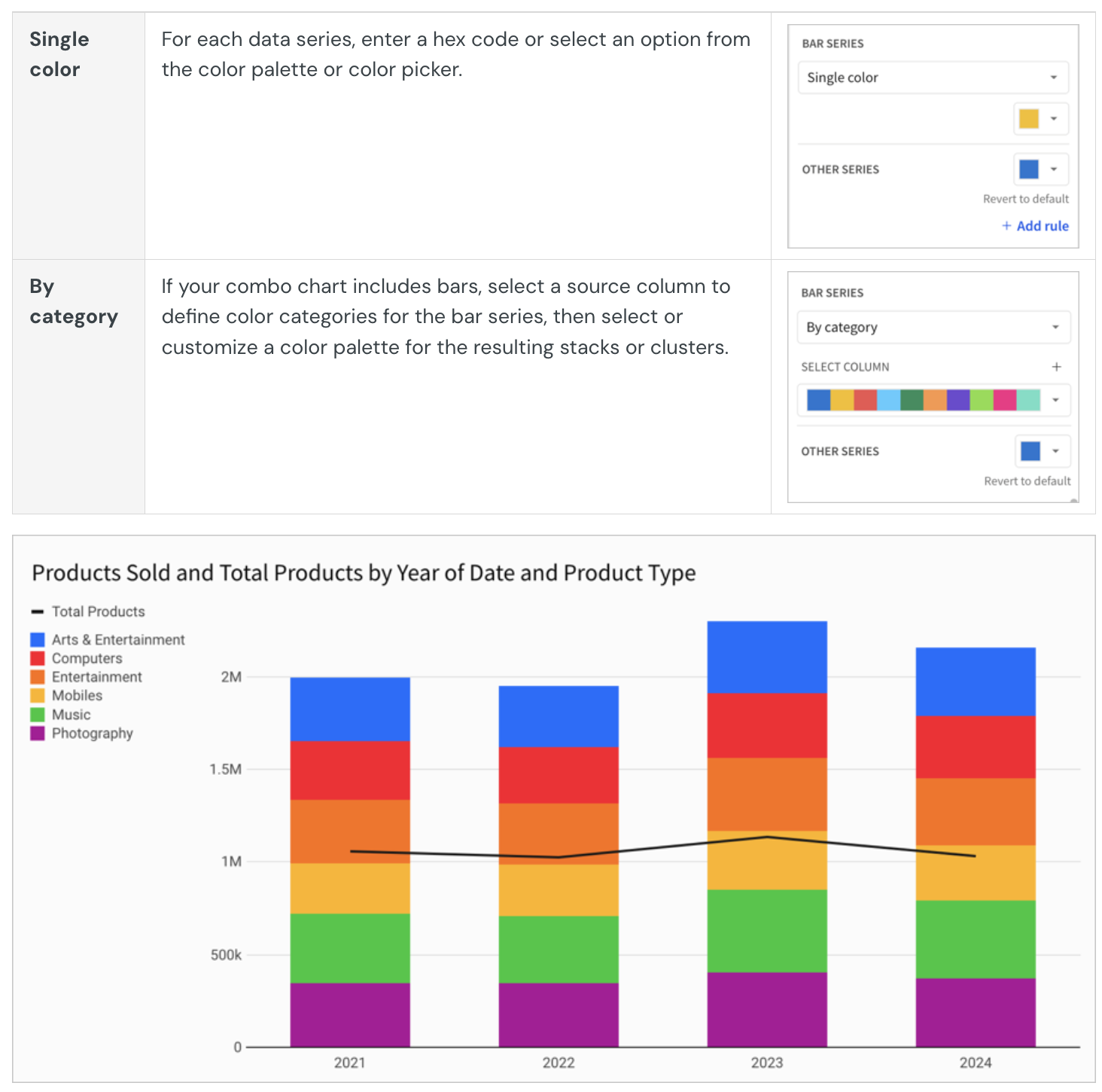 Bar charts are typically used to compare values across categories or groups of data. Create basic single-series bar charts, or build advanced charts to compare multiple variables, measure values against reference marks, evaluate parts of a whole, and more.