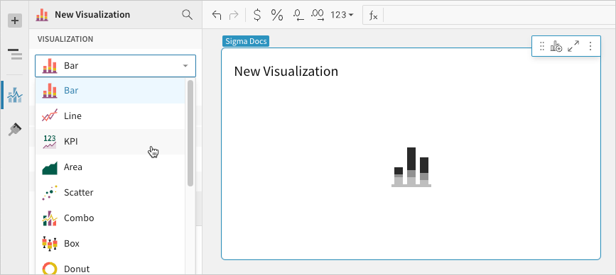 - In the Visualization property, click the dropdown field and select Bar from the list.