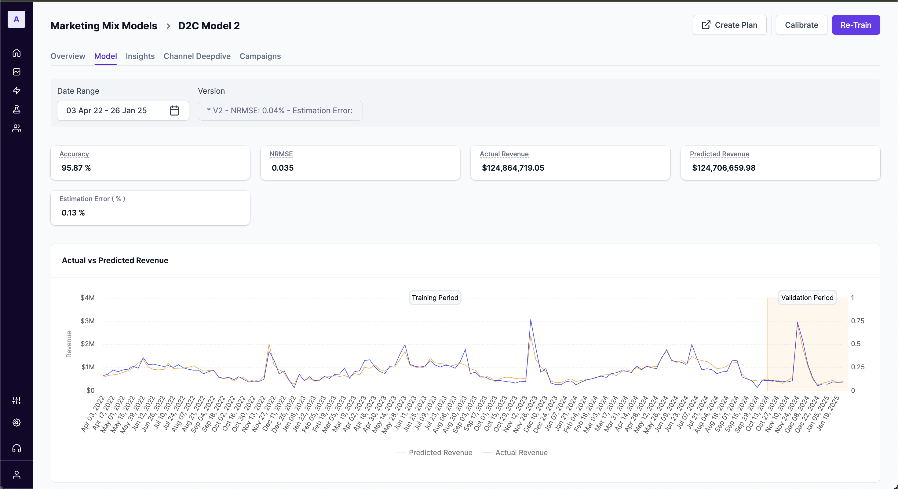 Validation is a critical step in ensuring the accuracy and reliability of your marketing mix model (MMM). This process tests the model's ability to predict outcomes based on unseen data, providing confidence in its forecasts and insights.