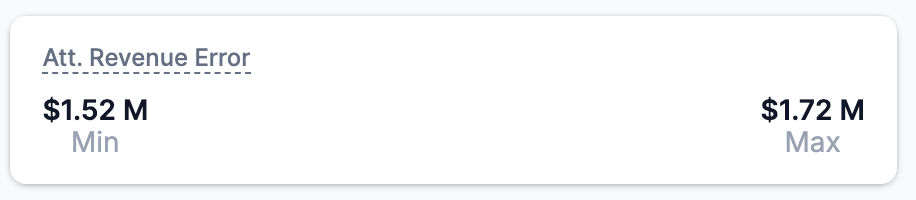 - Min Value: Represents the minimum possible shortfall in revenue attribution. Calculated as the difference between