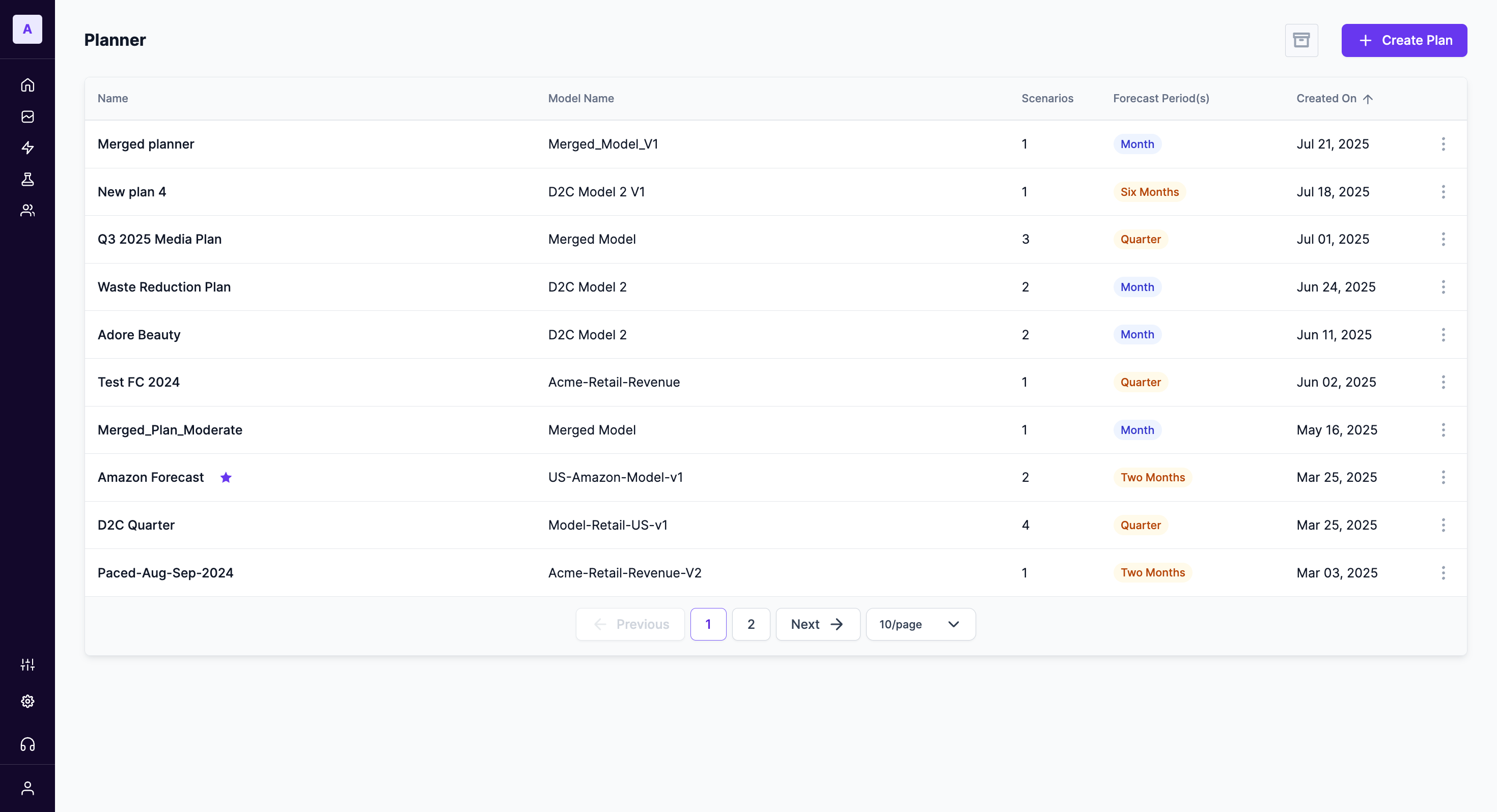 - Pagination: At the bottom of the list, you can navigate through multiple pages of plans if you have a large number of them.