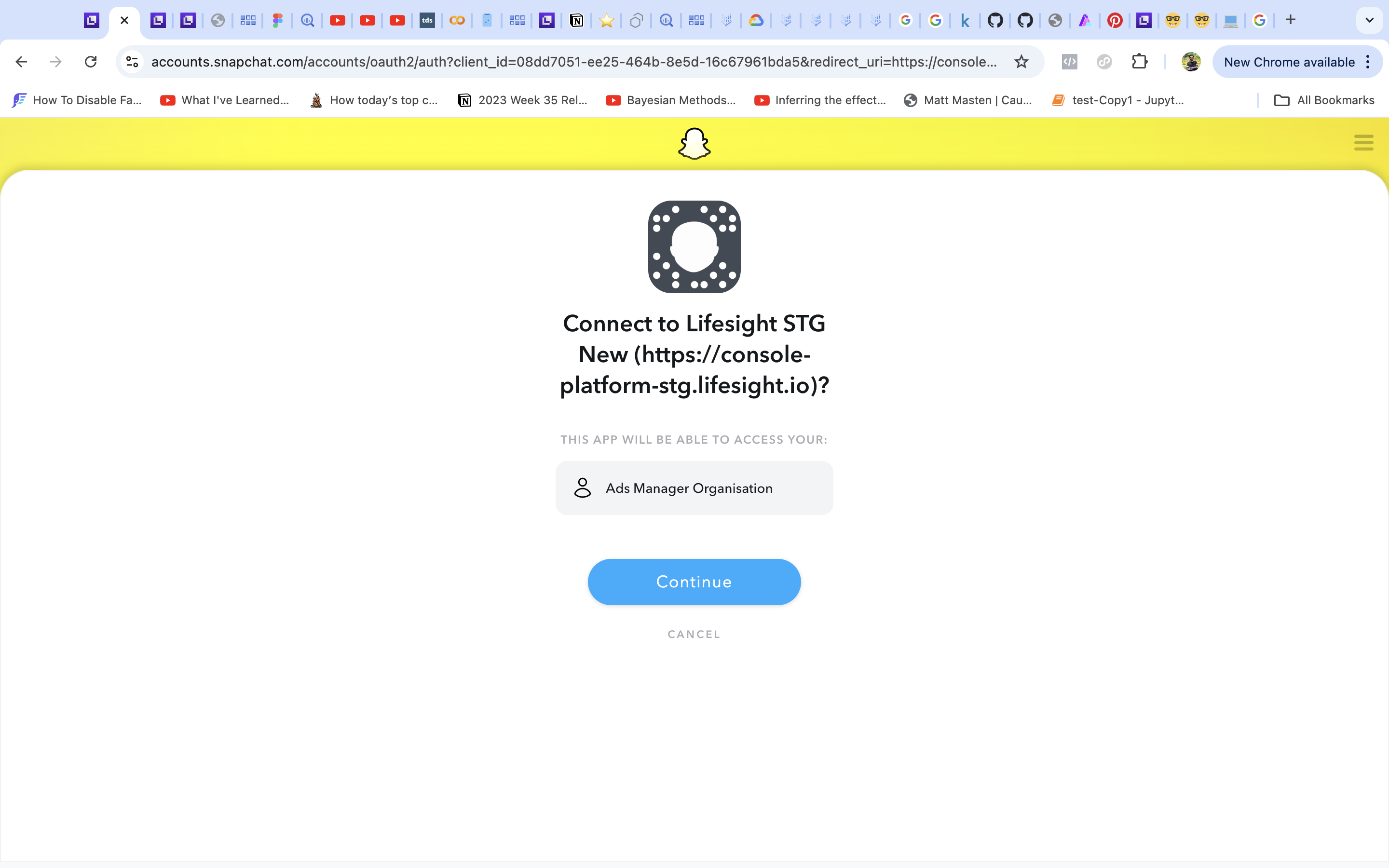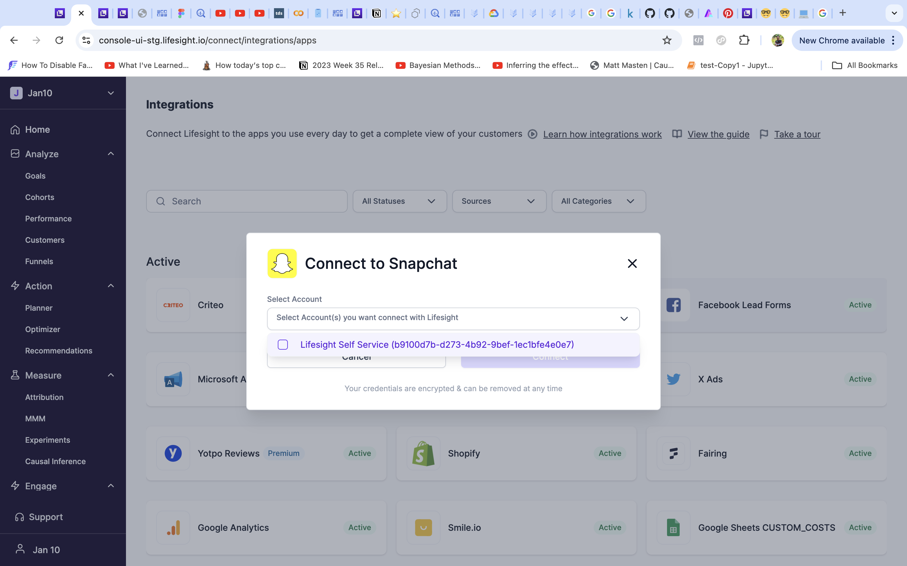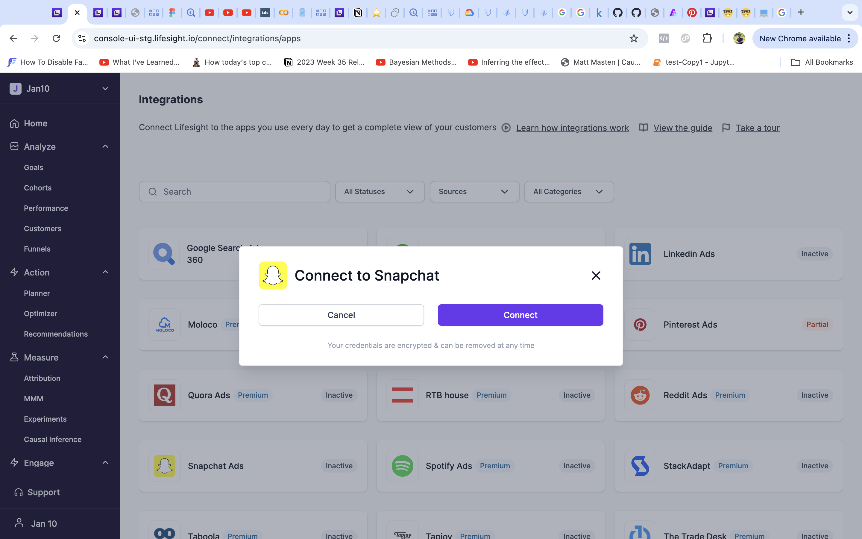 - Click on the Snapchat tile and click on the "Connect" button to begin the integration process.