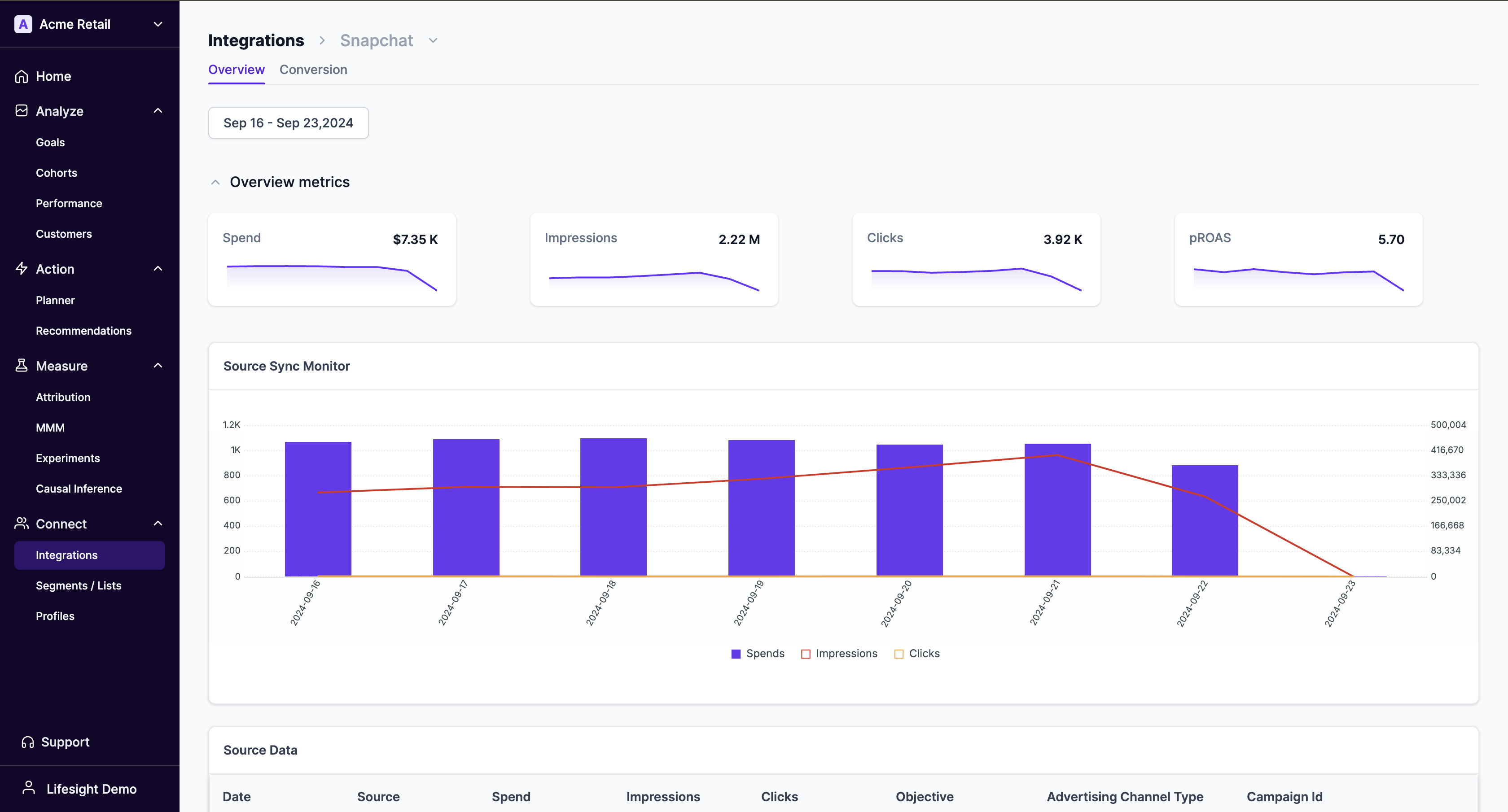 - The status will get changed to ‘Active’ and the ad data from the designated account will be available in the Attribution dashboard.